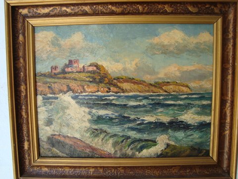 Hammerknuden med Hammershus og store bølger på Bornholm.