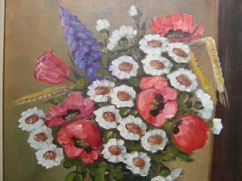 Hjalmar Andersen (født 1892): Blomster i vase. olie på lærred. Sign.: Hj. Andersen 50x40 (57x47)