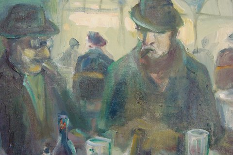 Poul Kastrup (1920-87): Caféstenming med 2 mænd, Paris. Olie på lærred. Sign.: Poul Kastrup 35x50 (53x68)