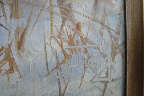 Thorvald Jørgensen (født 1909): Vinterparti med å. Olie på lærred. Sign.: Thv. J. 47x57 (59x69)