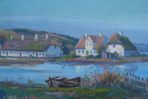 Bagpå blindramme betegnet - Sommermorgen Horsø, Husene 1924.