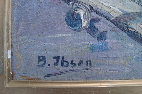 Børge Ibsen (1913-2002): Havneparti. Olie på lærred. Sign.: B. Ibsen 50x62 (57x70)