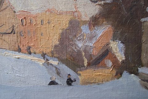 Vinterparti fra Vesterbro Mølle med villa i Aarhus.