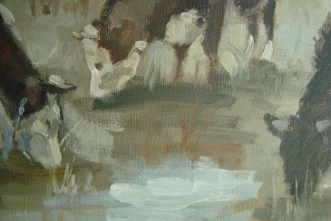 Mogens Thorsen (1924-2016): Køer i engen. Olie på lærred. Sign.: M.T. 60x70 (75x85)