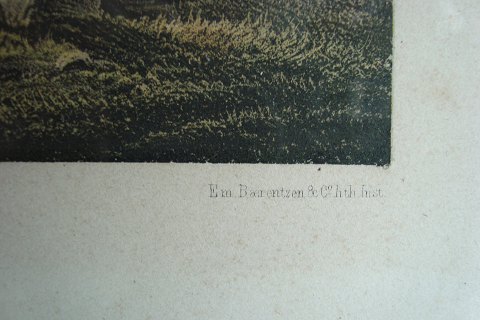 Trykt i 1856 hos Em. Bærentzen & Co lithografiske Institut i Kjøbenhavn til værket "Danmark". Litograf Emilius Bærentzen (1799-1868) var i 1837 stifter af Instituttet.