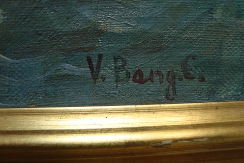 Ubekendt kunstner (20 årh): Sejlskibe på åbent hav. Olie på lærred. Sign.: V.Bang.C. 32x48 (41x57)