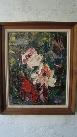 Holger Eicke Thomsen (født 1924): Blomsteropstilling. Olie på plade. Nyrenset. Sign.: Eicke. 30x24 (37x31)