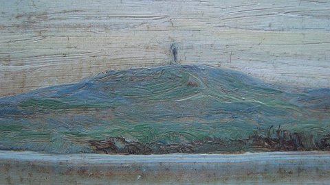 Skibe på søerne ved Silkeborg med Himmelbjerget i baggrunden.