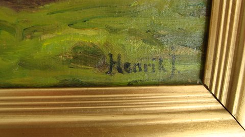 Henrik Jespersen (1853-1936): Landskab med sø. Olie på lærred. Sign.: Henrik J. 52x77 (68x93) Henrik Gamst Jespersen var elev af Vilhelm Kyhn og gik på Kunstakademiet i København 1879-82. 16213