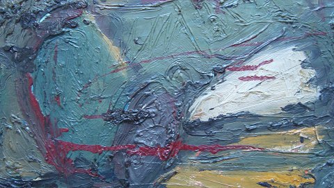 Per Søborg (20 årh): Abstraktion. Olie på lærred. Betitlet - "Hymne" Sign.: Per Søborg (bagpå) 40x50 (48x58)