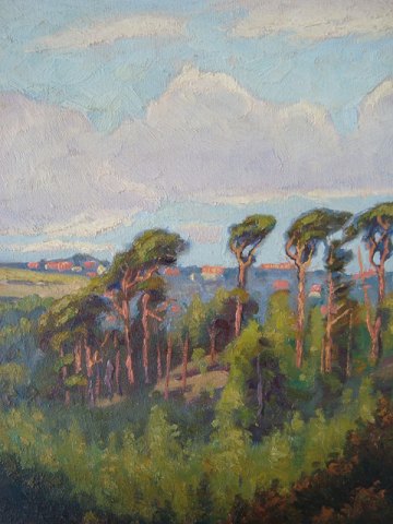 Hans Kruuse (1893-1964): Landskab ved Viborg med vue ind over byen, søerne og domkirken. Olie på lærred. Nyrenset. Sign.: H. Kruuse 65x82 (76x94)