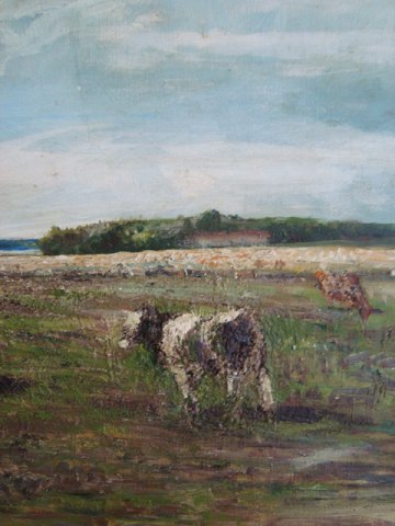 Niels Christiansen (1873-1960): Køer og kvier på engen. Olie på lærred. Sign.: N.Chr. 48x62 (60x75) Niels Christiansen var uddannet fra Teknisk skole.