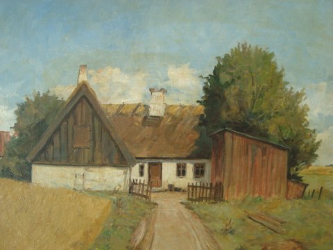 Bondehus ved kornmarker.