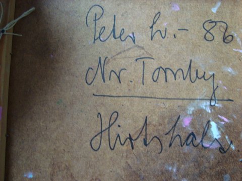 Peter Lüders (1942-92): Portræt 1986. Olie på plade. Sign.: Peter L. 86 (bagpå plade) Bagpå også - Nr. Tornby - Hirtshals Indrammet - 33x31