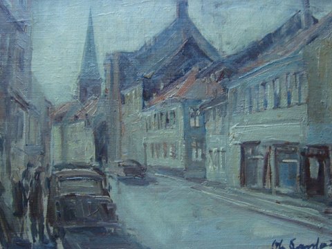 Byparti med biler og personer - antagelig Aarhus.