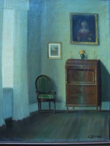 Frederik Drews (1909-61): Interiør med chatol og adelsportræt. Olie på lærred. Nyrenset Sign.: C. Birksö 50x39 (56x45) C. Birksø var både pseudonym for Frederik Drews og senere for Viggo Dahl.
