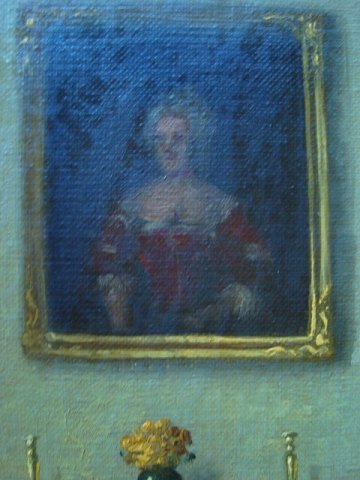Frederik Drews (1909-61): Interiør med chatol og adelsportræt. Olie på lærred. Nyrenset Sign.: C. Birksö 50x39 (56x45) C. Birksø var både pseudonym for Frederik Drews og senere for Viggo Dahl.