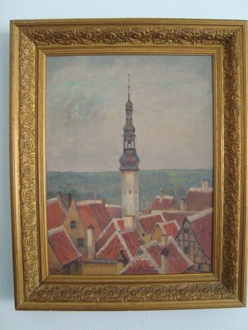 Bagpå blindramme med Kirke i Reval (tysk navn for Tallinn)