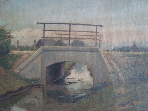 Alexander Svedstrup (1864-1930): Bro over vandløb 1924. Olie på lærred. Sign.: Sv. Dateret - Okt. 24. 30x38 (42x50)