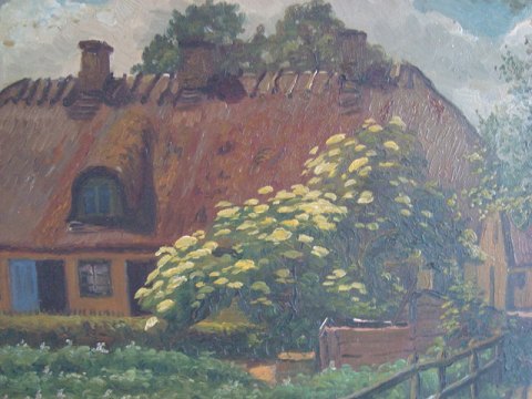 Landskab med gammelt hus 1919.