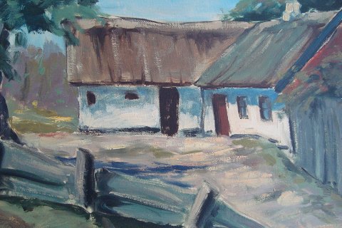 Knud Bøstrup (1927-2011): Landskab med gård. Olie på lærred. Sign.: K. B. 30x41 (41x52)