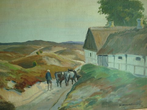 Landskab med vej forbi gård 1932.
