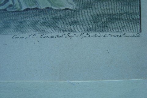 Noël Le Mire (1724-1801): Jupiter & Danaé. Koloreret kobberstik på papir. Peint par Annibak Carracci - Gravé per N. le Mire. 19x23 (26x30)