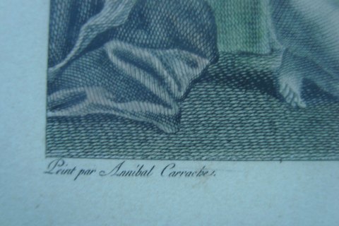 Noël Le Mire (1724-1801): Jupiter & Danaé. Koloreret kobberstik på papir. Peint par Annibak Carracci - Gravé per N. le Mire. 19x23 (26x30)