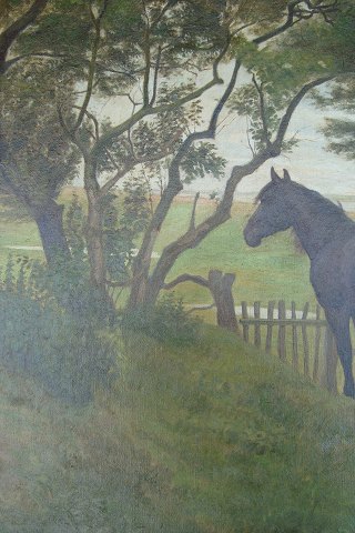 2 heste ved gærde ved Sebber med udsigt mod Nibe.