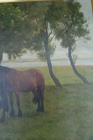 2 heste ved gærde ved Sebber med udsigt mod Nibe.