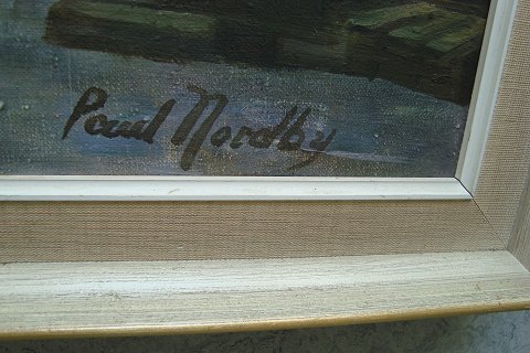 Paul Nordby (20 årh): Gårdeksteriør. Olie på lærred. Sign.: Paul Nordby 51x41 (60x50)