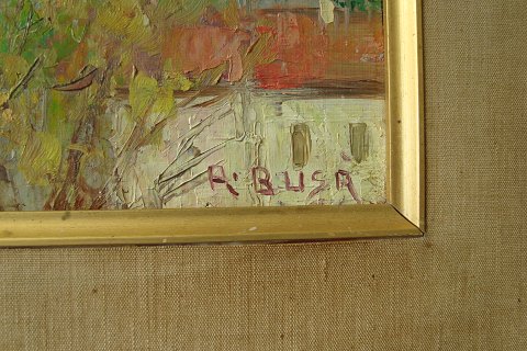 Armando Busa (1914-75): Udsigt udover kupler og tage i italiensk by. olie på plade. Sign.: A. Busa 24x35 (38x49)