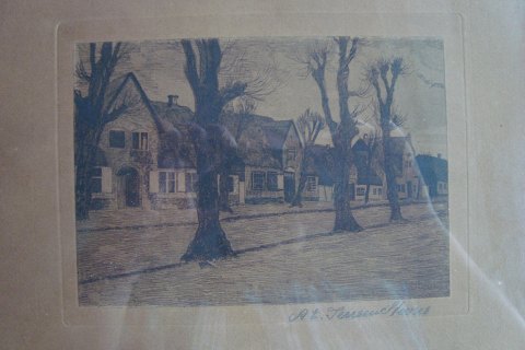 Axel Emil Jensen-Stevns (1879-1920): Landsbygade med træer. Radering på papir. Signeret i trykket - J. Stevns. Sign.: A.E. Jensen-Stevns 26x30 (29x33)