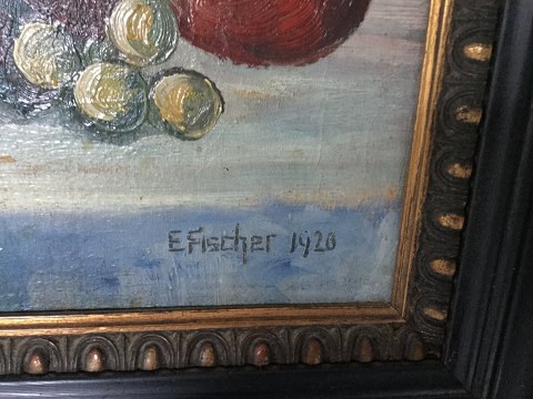 Edmund Fischer (1889-1952): Opstilling med frugter på bord 1920. Olie på lærred. Sign.: E. Fischer 1920 35x46 (49x60)
