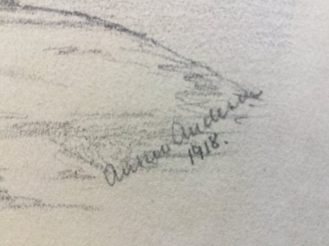 Anker Andersen (19/20 årh): Skallesluger. Bly på papir. Sign.: Anker Andersen 1918. Uden ramme. 22x27 2611