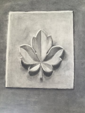 Oluf Chr. Nielsen (19 årh): Akademitegning af fragment. Akvarel/kul på papir. Usigneret. Små huller i papiret. 38x34 Uden ramme. 32611