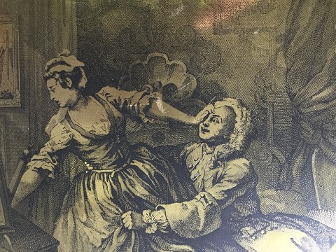 Gammel messing plade med motiv efter William Hogarth.