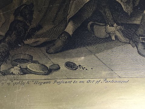 Gammel messing plade med motiv efter William Hogarth.