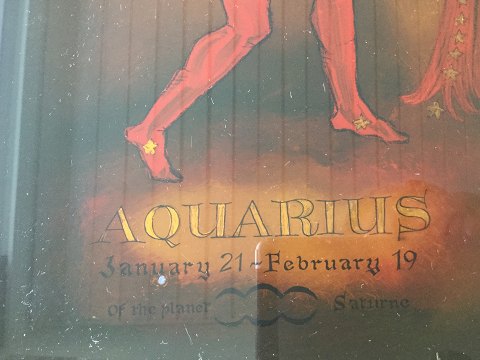 Hinterglasmaleri. Aquarius - January 21 - February 19 of the Planet Saturn. Vandmanden. Ramme med løs finér. 30x22 (41x33) 5103