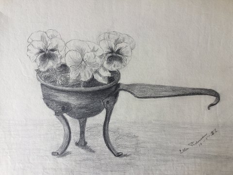 Stedmoderblomster i kobber stjertpotte 1912.