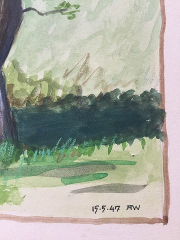 A. Weber (20 årh): Gammelt, kroget træ 1947. Akvarel på papir. Sign.: AW Dateret 15-5-47. Uden ramme. 29x22 Meget fin og detaljeret akvarel. 2611