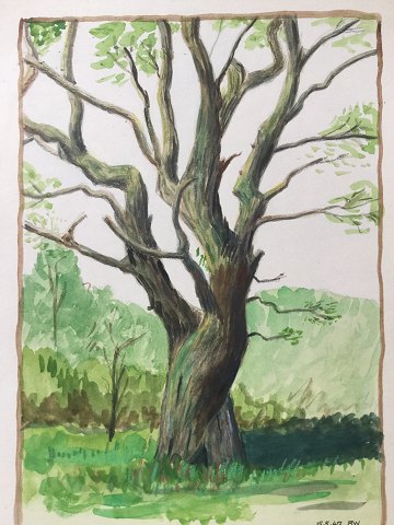 A. Weber (20 årh): Gammelt, kroget træ 1947. Akvarel på papir. Sign.: AW Dateret 15-5-47. Uden ramme. 29x22 Meget fin og detaljeret akvarel. 2611
