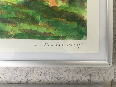 Linda Watson (20 årh): Litografier på papir. Begge signeret - L. Watson Febr. 2010. Litografi 1: Titel - Trees by Lake" Litografi 2: Titel - "Shaded walk" Begge 26x33 (29x36)