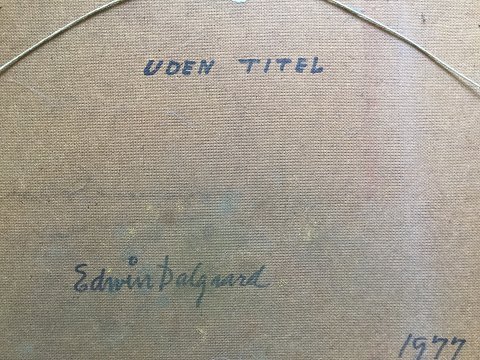 Edwin Dalgaard (20 årh): Komposition "Uden Titel" 1977. Olie på plade Sign.: ED 77. Betegnet bagpå "Uden Titel" - Edwin Dalgaard 1977. 36x43 (40x48)