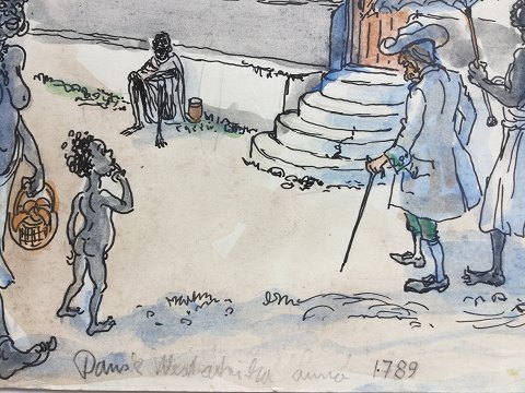 Svend Erik Jensen (født 1919): "Dansk West Afrika 1789" Udkast til maleri Aalborg Stiftstidende 1974. Akvarel og tusch på papir. Sign.: Erik 74. Uden ramme. 21x30