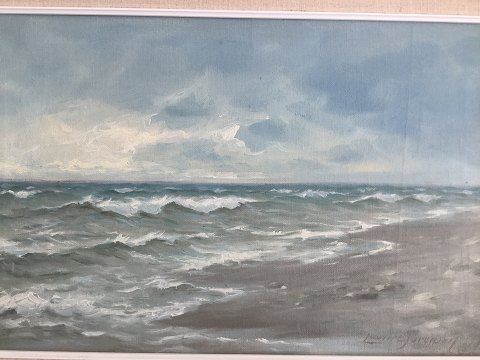Lauritz Sørensen (1882-1952): Kystparti ved solnedgang. Olie på lærred. Sign.: Lauritz Sørensen 31x48 (43x60)
