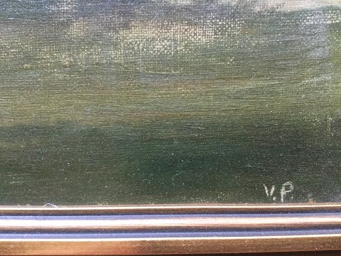 Vilhelm Pacht (1854-1926): Landskab med mølle. Olie på lærred. Sign.: V.P. Nyere guldramme. 18x29 (30x41)