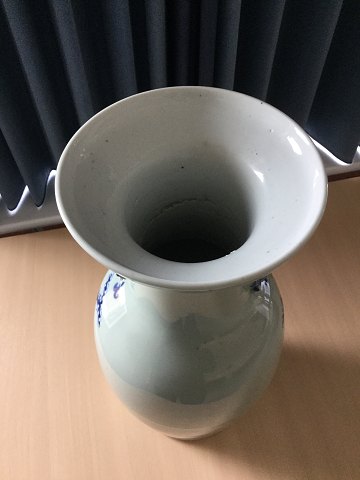 Kinesisk Porcelæn (19 årh): Svag celadon fond med blå og hvid dekoration. Dekoreret med påfugl og fuhund. 2 gennembrudte ører. Uden stempel. Højde - 44½ cm. Diameter i top og bund - ca. 18 cm.
