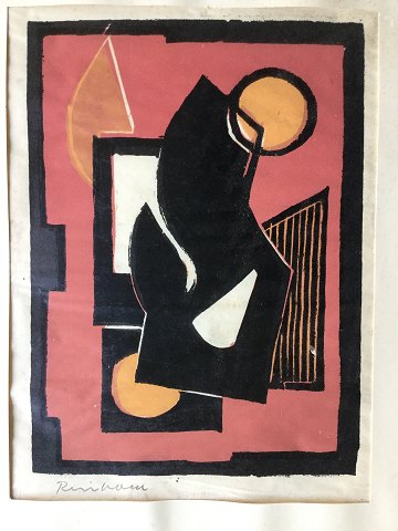 Harald Reinhold (1911-96): Abstraktion. Fravetræsnit på papir. Sign.: Reinhold Indrammet uden glas 24x18 (33x26) Harald Reinhold var udlært typograf, som maler autodidakt.