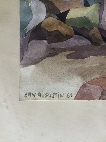 Ubekendt kunstner (20 årh): Parti fra San Augustin 1961. Akvarel på papir. Sign.: Søren ???? Betegnet - San Augustin 61 30x22 (45x37)